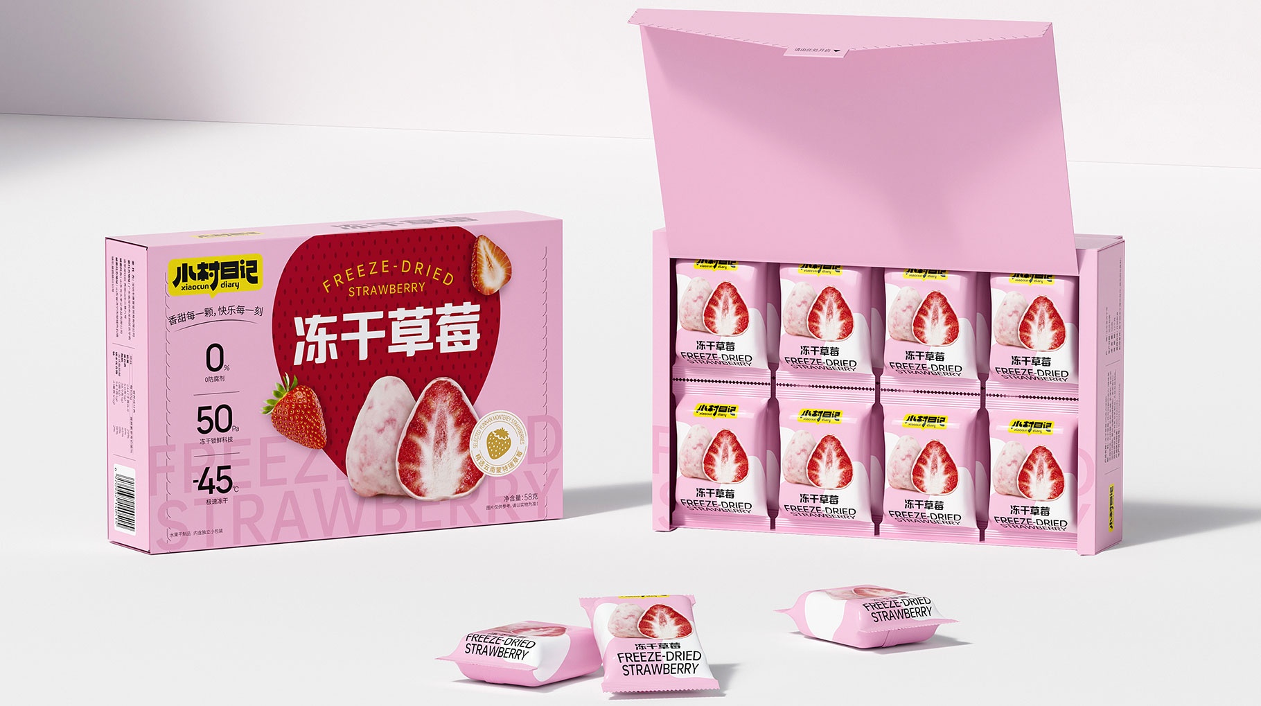 小村日記、凍干草莓包裝設(shè)計(jì)、食品包裝設(shè)計(jì)