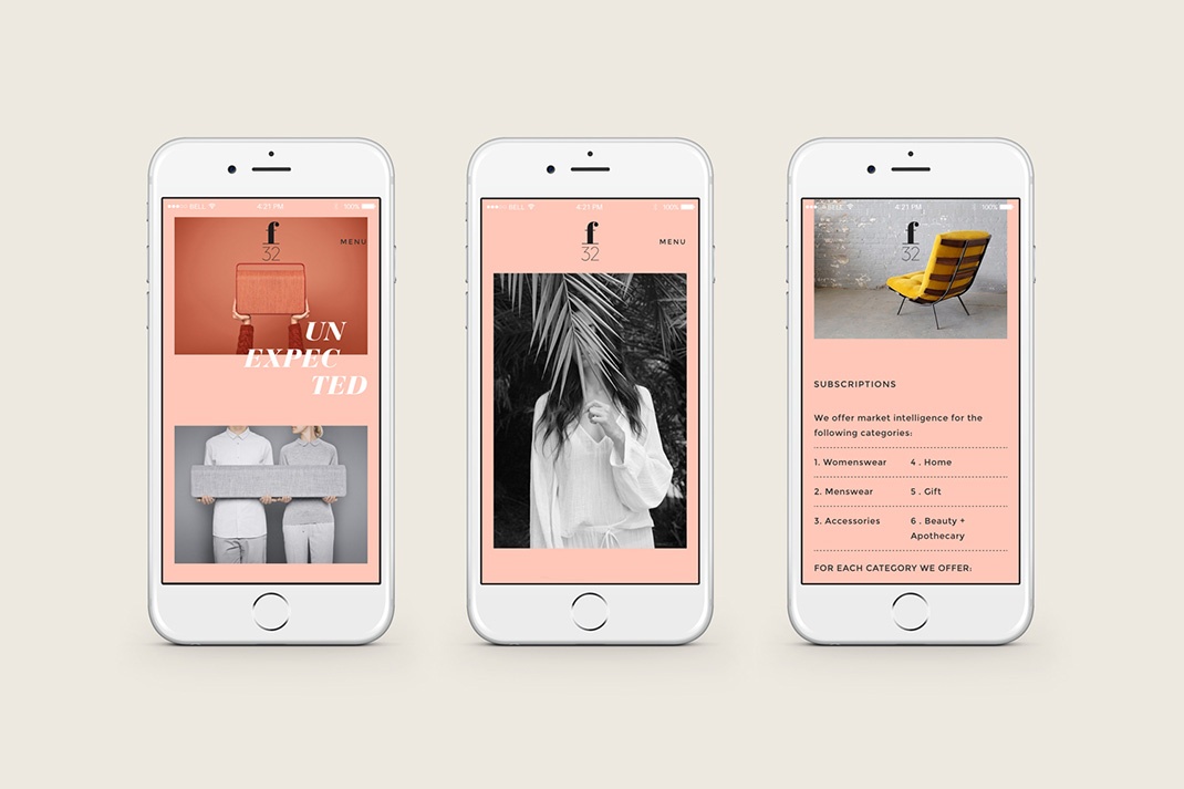 F32是一家美國時尚觀察公司,由吉娜(Gina)和麗莎·普里奧洛(Lisa Priolo)創立,在洛杉磯設有辦事處,致力于尋找和支持那些將繼續塑造全球文化的藝術家和品牌。F32與平面設計工作室Blok Design合作,更好地表達了這一愿景,以及他們的精致和高度當代的審美敏感性。這是通過在名片、貼紙、文具和趨勢報告的印刷中命名和視覺識別,并通過一個新的響應網站在線實現的。