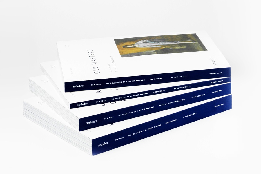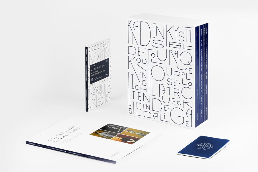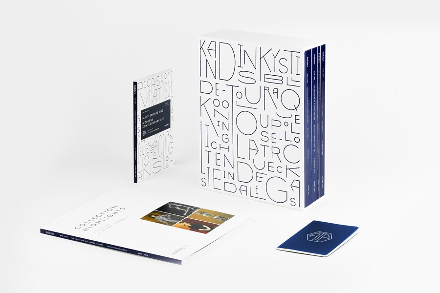 Franklyn的設計理念是以陶伯曼鐘愛的中世紀現(xiàn)代美學為靈感的定制印刷術為基礎,并符合蘇富比對曼哈頓展覽空間的重新設計,這一設計旨在喚起《紐約時報》對陶伯曼的鮑豪斯美學的描述。從相對較小的四卷400頁的拍賣小冊子,到包裹蘇富比紐約總部外部的兩層乙烯基大橫幅,它可以輕松地擴展到各種各樣的抵押品。
