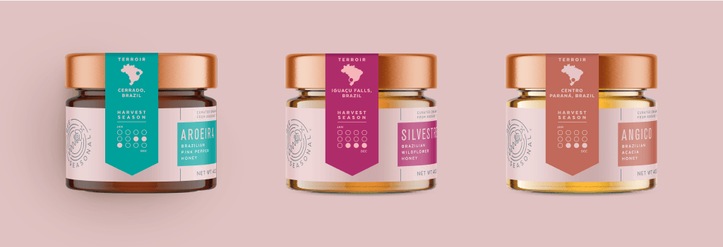 蜂蜜的風(fēng)味和顏色是該位置所特有的,所有這些都在蜂蜜包裝設(shè)計上清楚地表達(dá)出來。此外,收獲季節(jié)對于蜂蜜的風(fēng)味和特性至關(guān)重要,蜂蜜的不同特征也體現(xiàn)在蜂蜜的風(fēng)味和特性上。