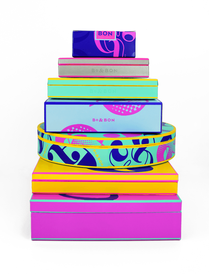 Bo&Bon Confiserie是一家由一對年輕的法國夫婦創立的精品巧克力和糖果店,位于新澤西州。他們制作正宗的法國馬卡龍,松露,糖果,手工切制的棉花糖,巧克力味,牛軋糖,烘焙食品等等。他們在兩個零售地點(新澤西州萊克伍德和紐約布魯克林)以及通過其網站bo-bon.com進行銷售。他們需要刷新品牌形象以恢復品牌形象,同時還要解決實際的包裝設計挑戰。我們為巧克力提供了令人振奮和充滿活力的品牌,但品牌重塑基本上涵蓋了其各種糖果產品的整個系列。挑戰的一部分是找到一種包裝所有產品的方法,而庫存中沒有太多不同的盒子。我們與他們合作,根據SRP目標確定產品,并創建了模塊化的托盤系統和盒子尺寸,以便可以在馬卡龍和巧克力糖果之間互換托盤。包裝設計的視覺識別采用充滿活力的多色調色板的形式,該調色板既多樣又嚴格。限量版模式被用于某些包裝格式,例如松露盒和分類禮品盒,以幫助保持生產線有趣和意想不到的樂趣。我們不僅為他們提供了醒目的視覺效果,而且還提供了具有高度特定性和技術性的包裝圖和結構設計細節,使他們能夠在較短的時間內(不到2個月)在海外生產其產品線,幾乎沒有錯誤。最終結果是無法忽視的視覺識別,并幫助他們擴展了產品線,而又不過度投資包裝材料。